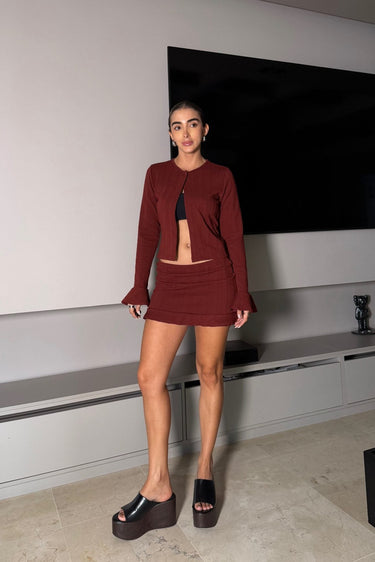 El set monaco es un conjunto de dos piezas que reúne una blusa y falda en tejido de 98% poliéster y 2% spandex. Esta composición garantiza durabilidad, elasticidad y un drapeado impecable que mantiene su forma tras cada lavado. Una propuesta editorial para quienes valoran prendas versátiles y de construcción premium.