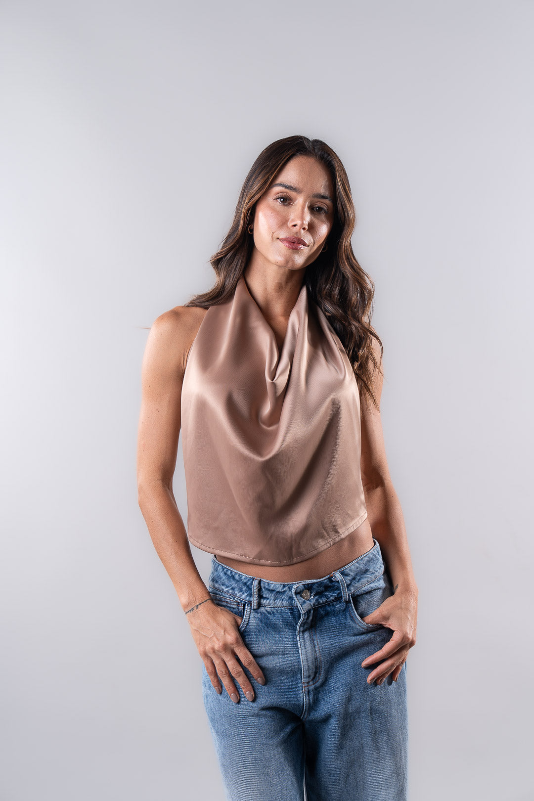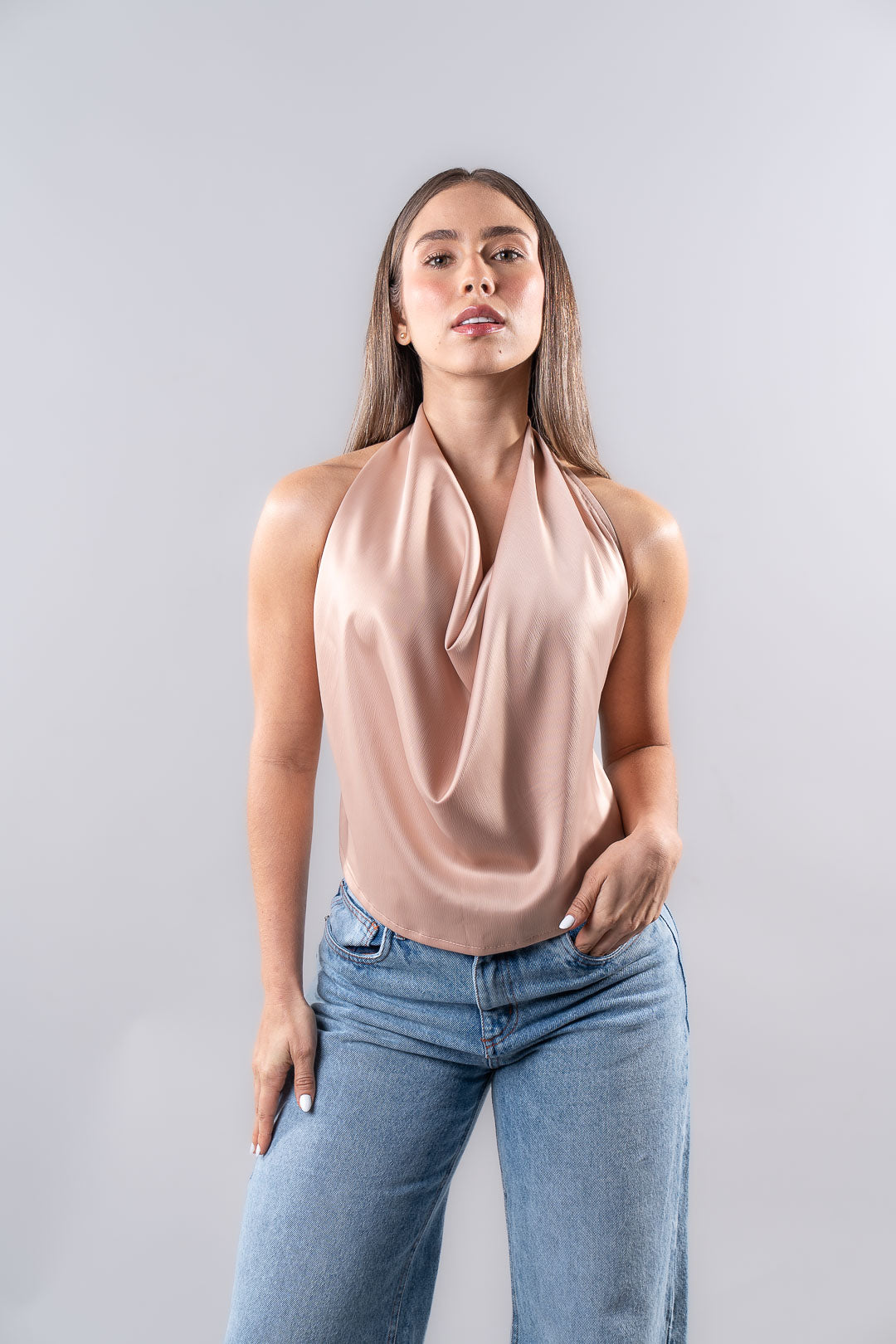La Blusa Bali NSB es una pieza que fusiona sensualidad y refinamiento con un aire contemporáneo. Su diseño tipo halter con caída fluida en el escote aporta un look sofisticado y natural, mientras que la espalda completamente descubierta añade un toque audaz y femenino que se roba todas las miradas.