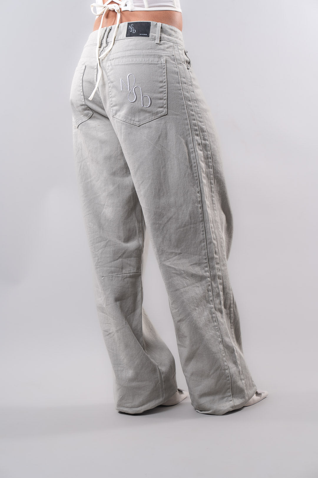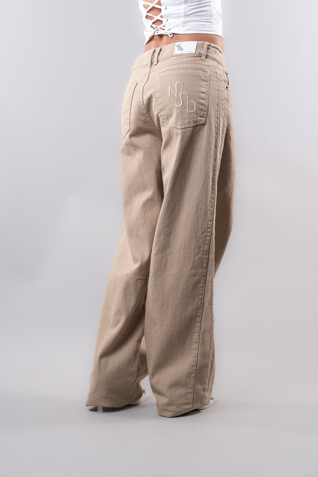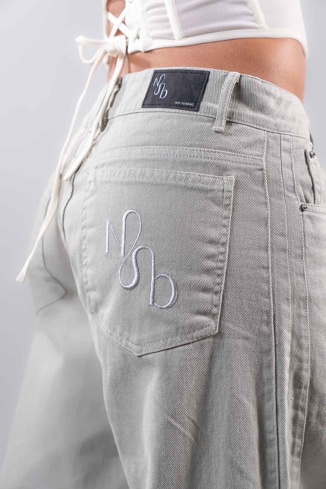 Su silueta de corte recto amplio y tiro medio ofrece un calce cómodo sin perder estructura, permitiendo libertad de movimiento y una caída fluida que estiliza la figura. Cuenta con botón de golpe, bolsillos delanteros y traseros funcionales, y un detalle distintivo: un bordado exclusivo en el bolsillo trasero que añade un toque único y sofisticado.