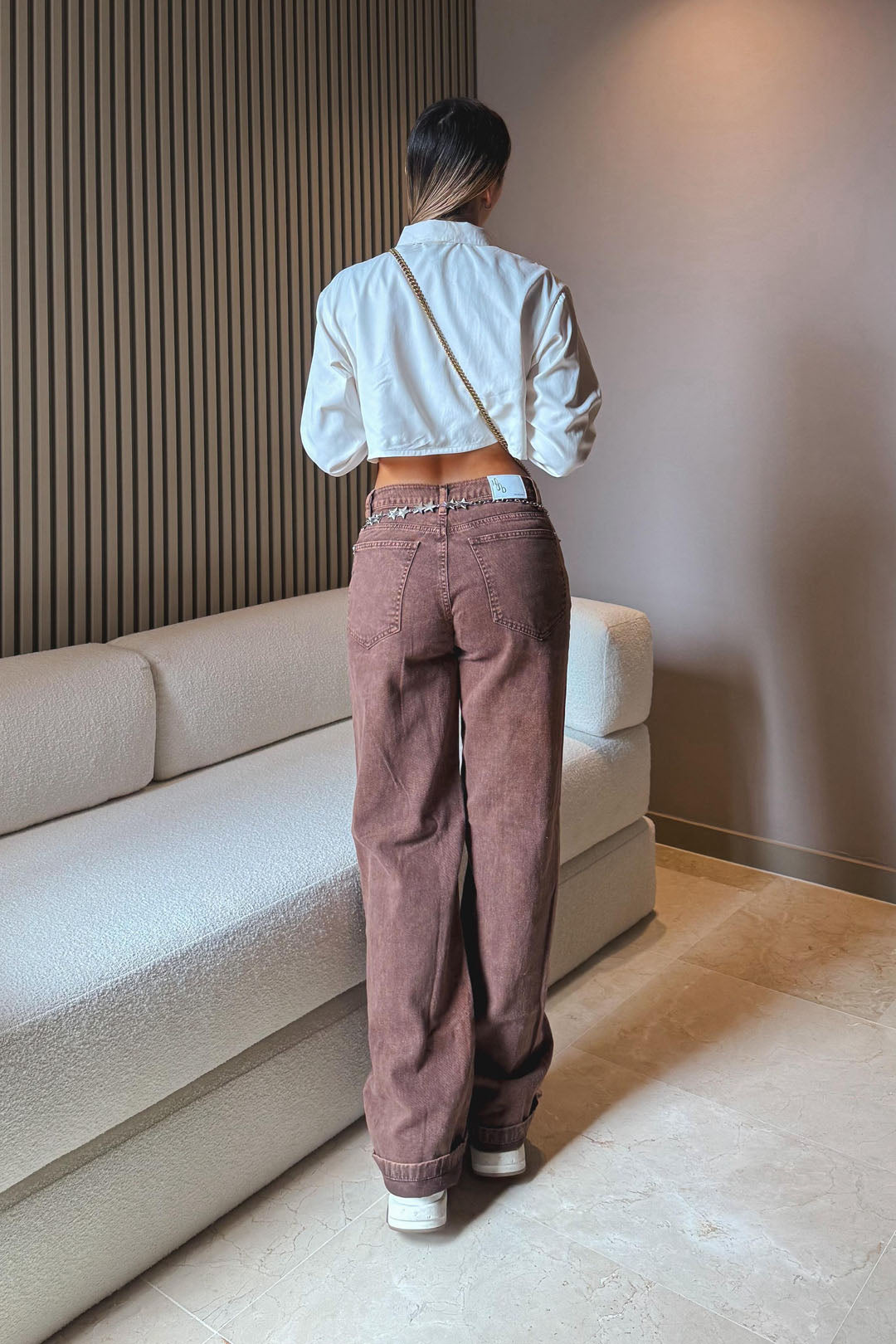 Jean con botón de golpe, bolsillos delanteros y traseros, bota recta.