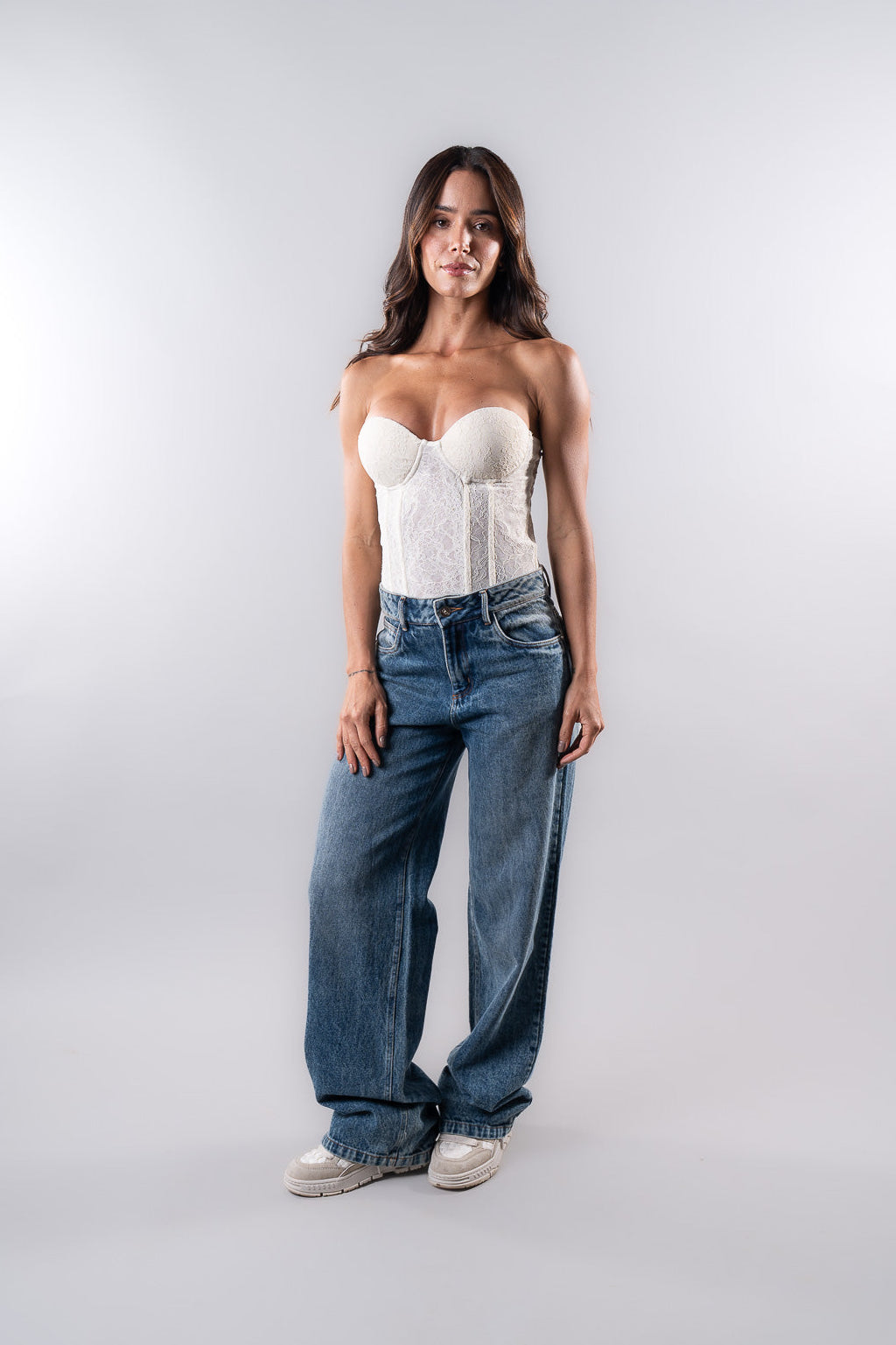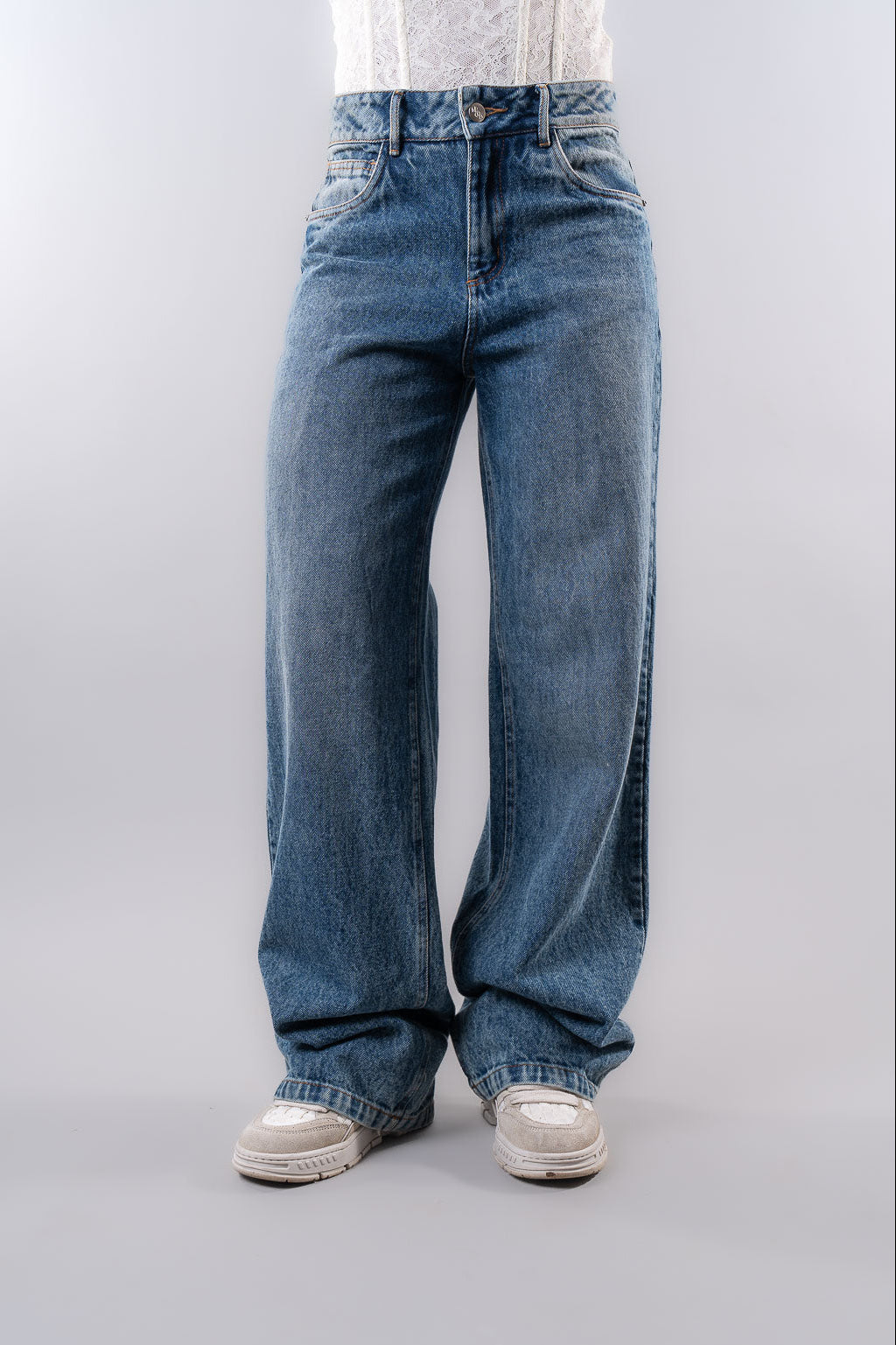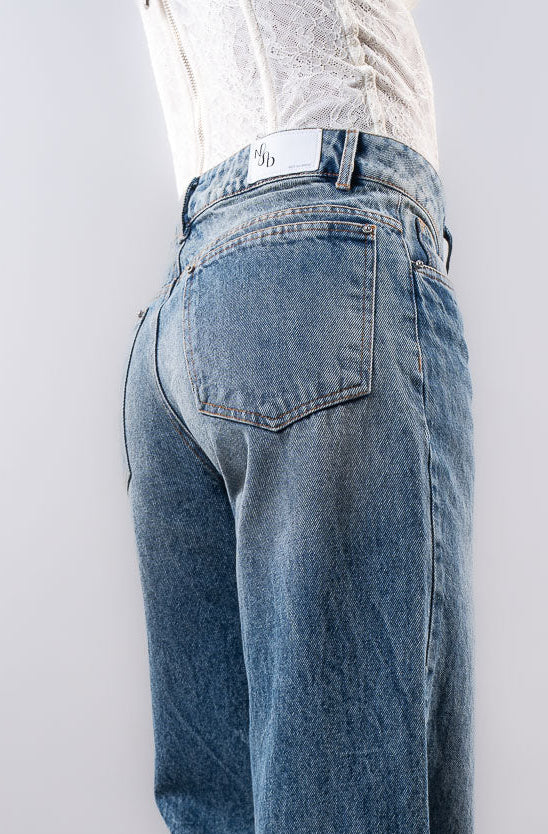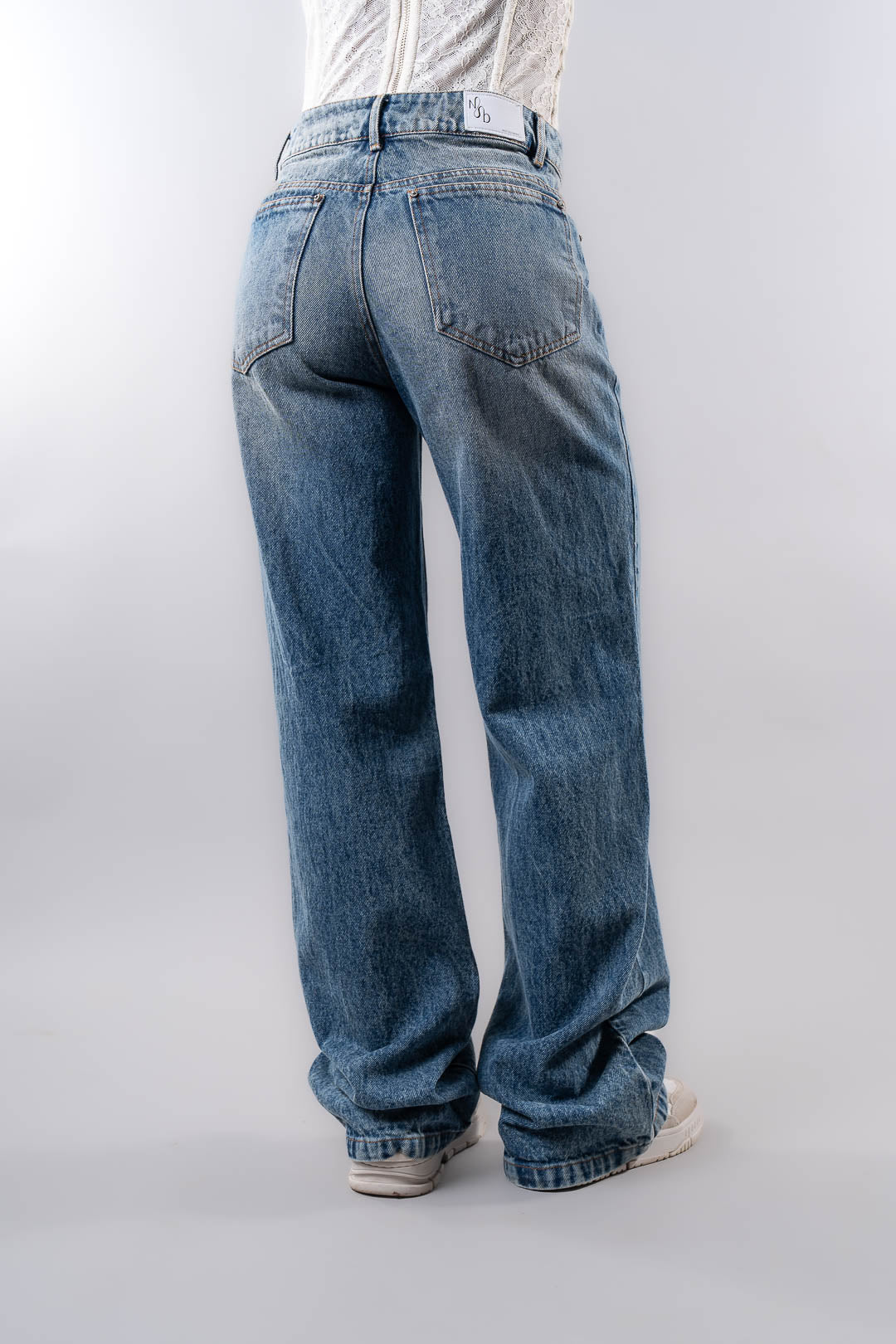 Presenta un corte clásico con bota ligeramente recta y tiro medio, pensado para realzar la silueta sin sacrificar comodidad. Su diseño incluye botón de golpe, bolsillos delanteros y traseros funcionales, y está confeccionado en denim 100% algodón con un acabado de tintorería que le otorga textura, durabilidad y un look impecable.